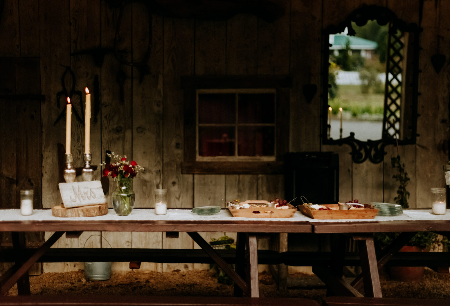The Barn was built in the 1870’s and has a lot of charm and character. The front has a beautiful bar and can be used for cocktail hour before the reception starts. The Barn’s Terrace is a completely outdoor venue with a flooring of mostly grass.